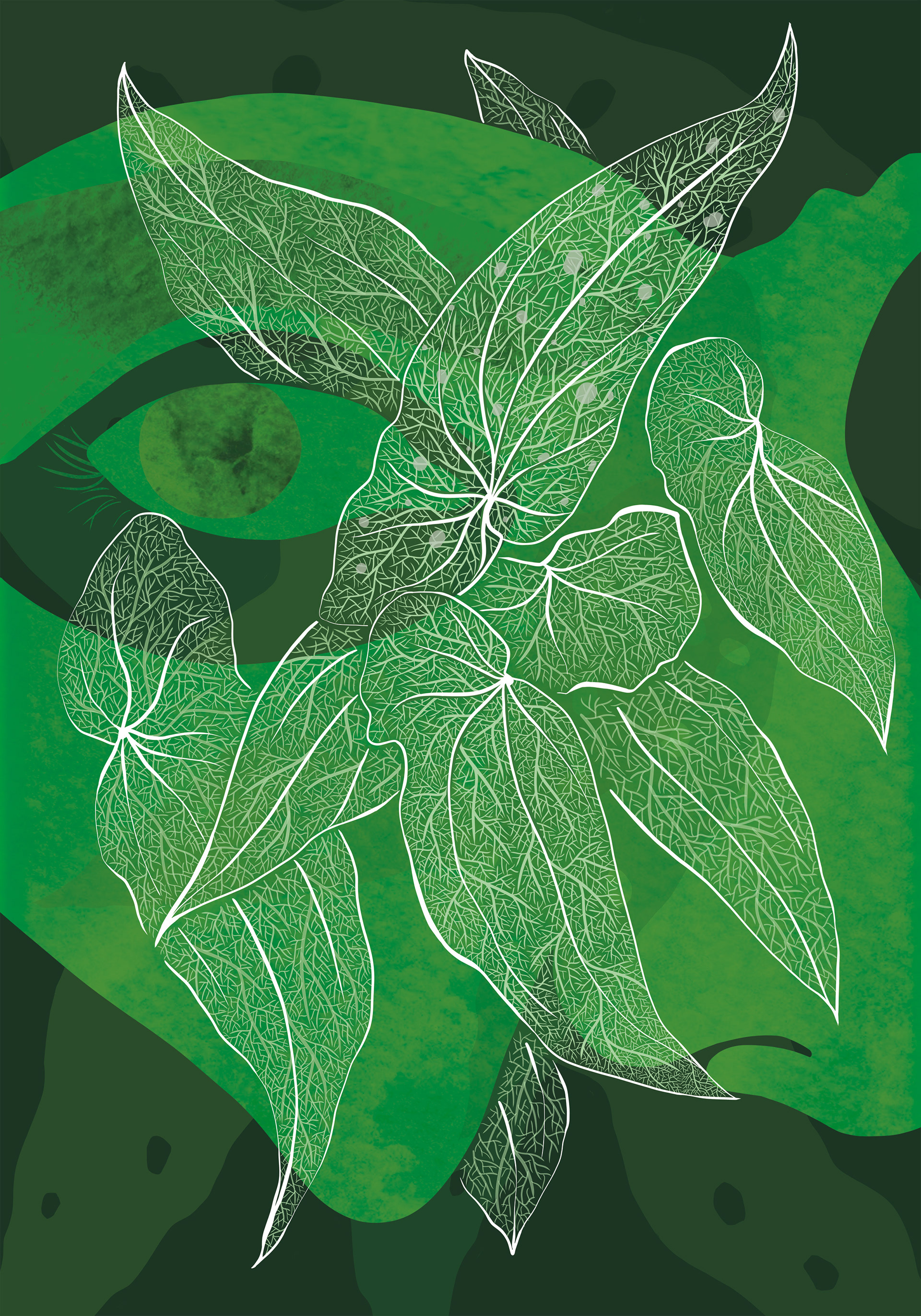 W swojej pracy dyplomowej chciałam pokazać związek między mną a moim roślinami. Składa się na nią osiem plakatów/grafik w formacie B1 100 x 70 cm, wykonane w technice druku cyfrowego. Inspirację dla swoich grafik czerpałam z twórczości Williama Morrisa, który w swoich dziełach nawiązywał do naturalnych form roślinnych w bardzo szczegółowy sposób. W swoich projektach zwróciłam szczególnie uwagę na relację pomiędzy różnymi częściami ciała, a względnym podobieństwem do konkretnej rośliny. Chciałam też podkreślić mój bezpośredni związek z przenikającymi się światami: moimi i roślin. Poprzez szczegółowo rysowane blaszki liściowe, próbowałam pokazać jak bardzo złożonym i skomplikowanym organizmem są rośliny – odnosząc go również do człowieka. Dodatkowo intensywne zielenie oraz fragmenty żółci, które wykorzystałam do wypełnienia grafik ożywiają i nadają pracom przestrzenności. Czas, który im poświęciłam pozwolił mi rozwinąć umiejętność pracy z tabletem graficznym oraz ukierunkował mnie na tematy które chciałabym poruszyć w swoich przyszłych pracach.