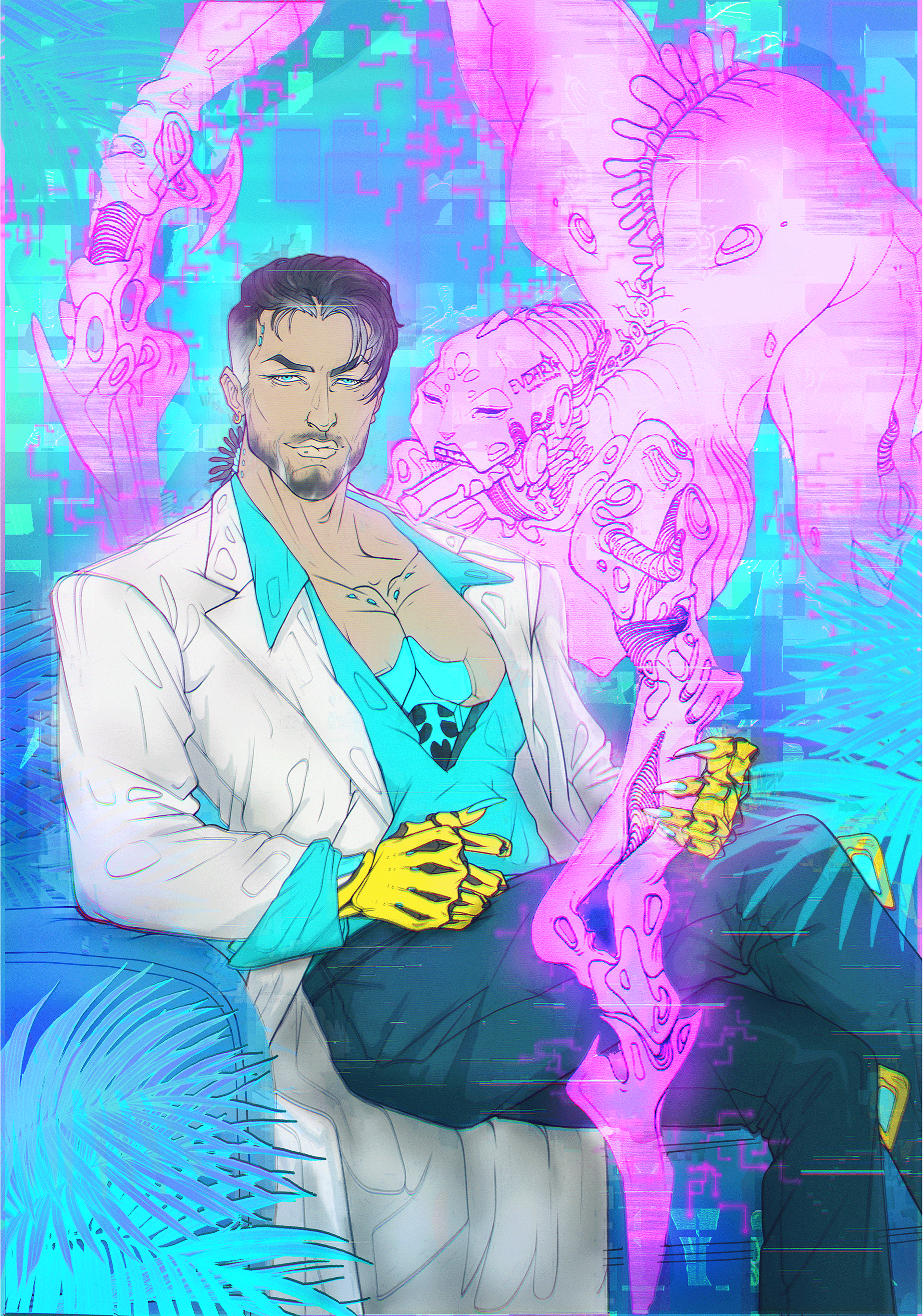 W swoich ilustracjach nie chciałam aby oglądająca/cy mieli poczucie zamkniętej historii. Ba - chciałam nawet, aby zinterpretowali historię Pani Detektyw Sulivan na swój własny sposób. Nie stawiam jasno sytuacji, która praca jest pierwsza, a która ostania. Czy będąc uczestniczką rockowego koncertu syntetycznego androida, wielkiej gwiazdy rocka Rockerboya s.Madd’sa, czy sceną z intymnej relacji z syntetycznym androidem kochankiem Pani Detektyw (nie posiadający upragnionej HerrOwner, właścicielki), czy spotkaniem demonem z cyberprzestrzeni, hologramem wspomnienia mężczyzny, który przestał istnieć w świecie rzeczywistym zapisanym na starych nośnikach danych jakim były kasety VHS... Czy spotkaniem z dominą, szefową korporacji produkującej syntetyczne androidy Eudith Neumayer. To tylko moje wybory następujących po sobie scen.