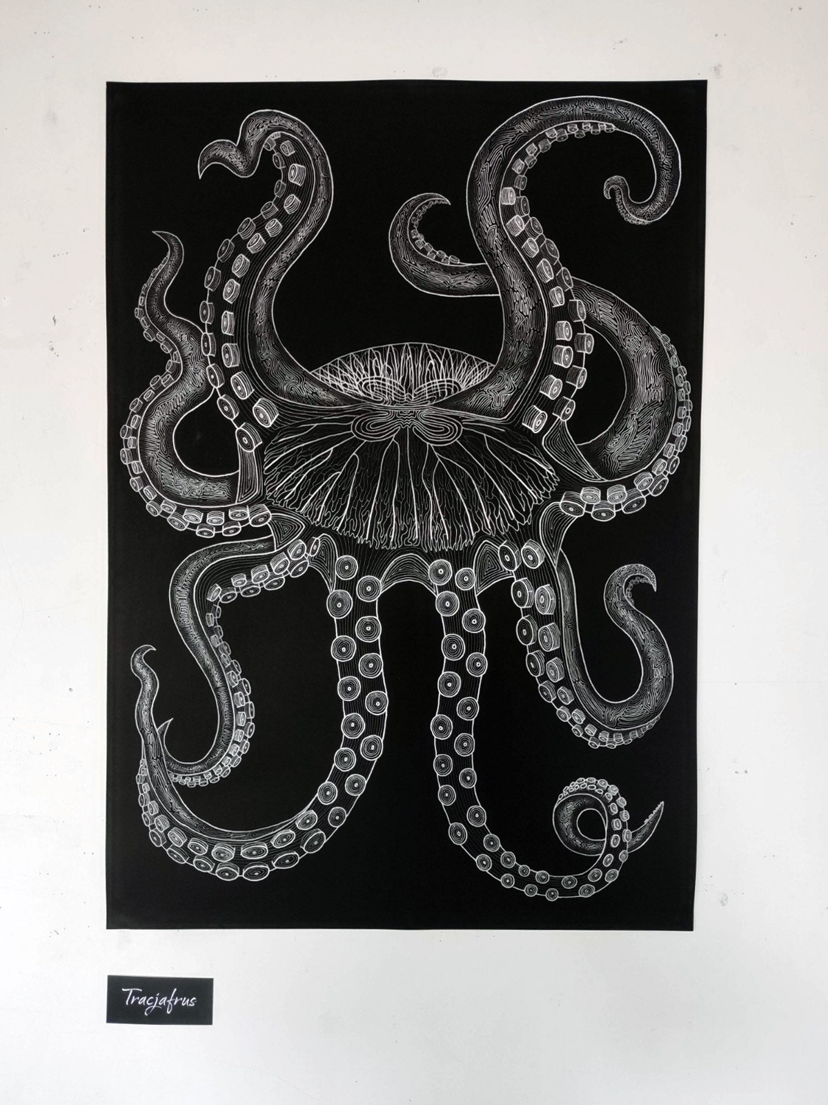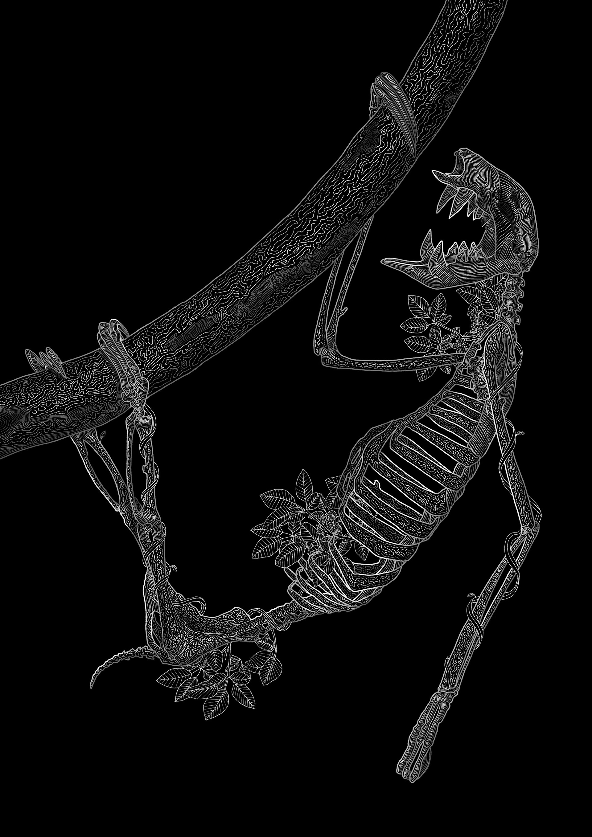 Zastosowana przeze mnie technika jest bardzo szczegółowa i linearna. Jednym z moich inspiracji są prace Andrea Minini, który liniami przedstawia różne zwierzęta. W okresie szkolnym rysowałam piórkiem z tuszem grafiki, które także składały się tylko z kresek i kropek. Wykorzystanie tabletu graficznego pozwoliło mi na jeszcze większą precyzję.