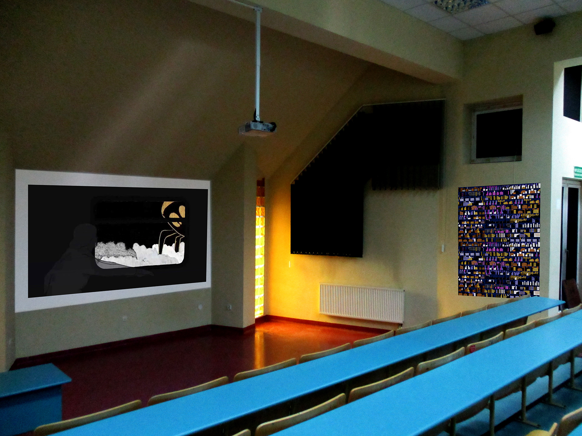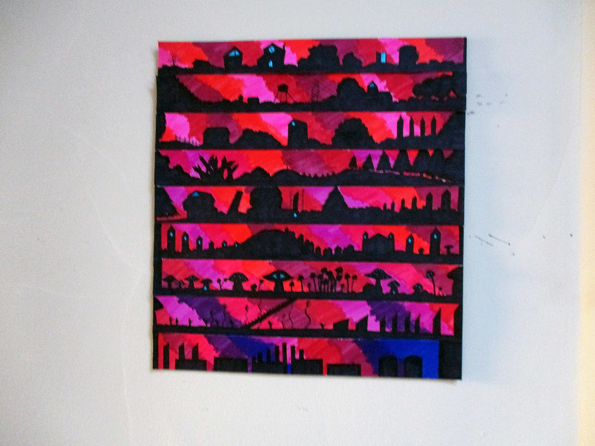 Trzecia oparta jest na krajobrazie strefy przemysłowej widzianej z autostrady w nocy. Jest zaprojektowana na podstawie licznych zdjęć i stanowi moją próbę oddania krajobrazu urbanistycznego. Budynki są sprowadzone do podstawowych kształtów i pomalowane płaskim kolorem.