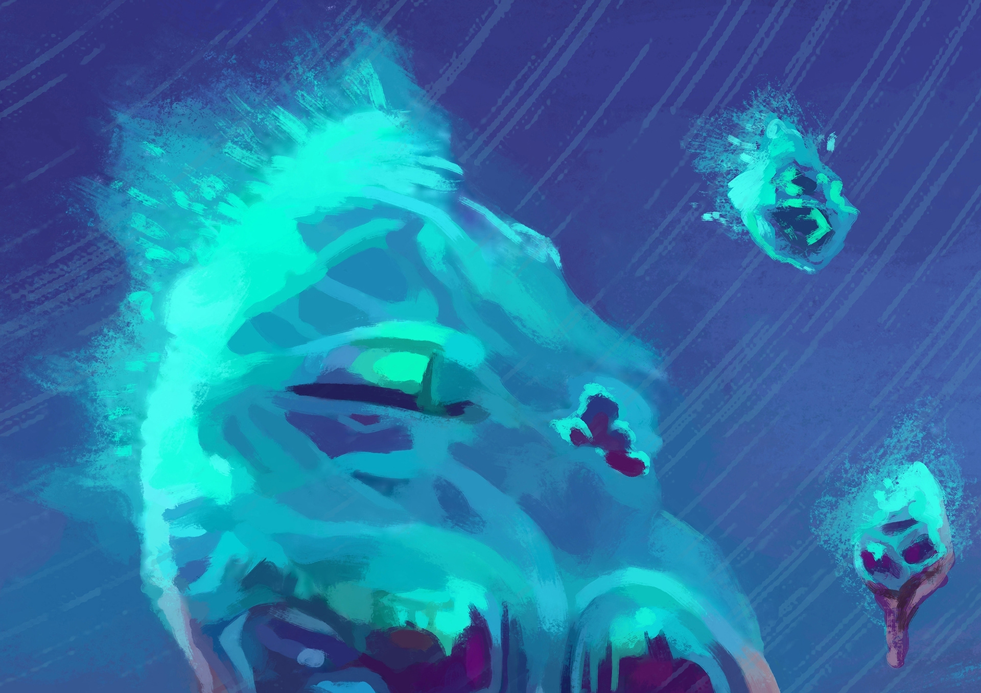Jednak światy to nie tylko krajobrazy, ale i istoty, które na nich żyją, dlatego stworzyłam do nich mieszkańców. Puściłam wodzę wyobraźni i stworzyłam potwory, które są przygotowane do życia w nieprzyjaznych innym istotom krainach.