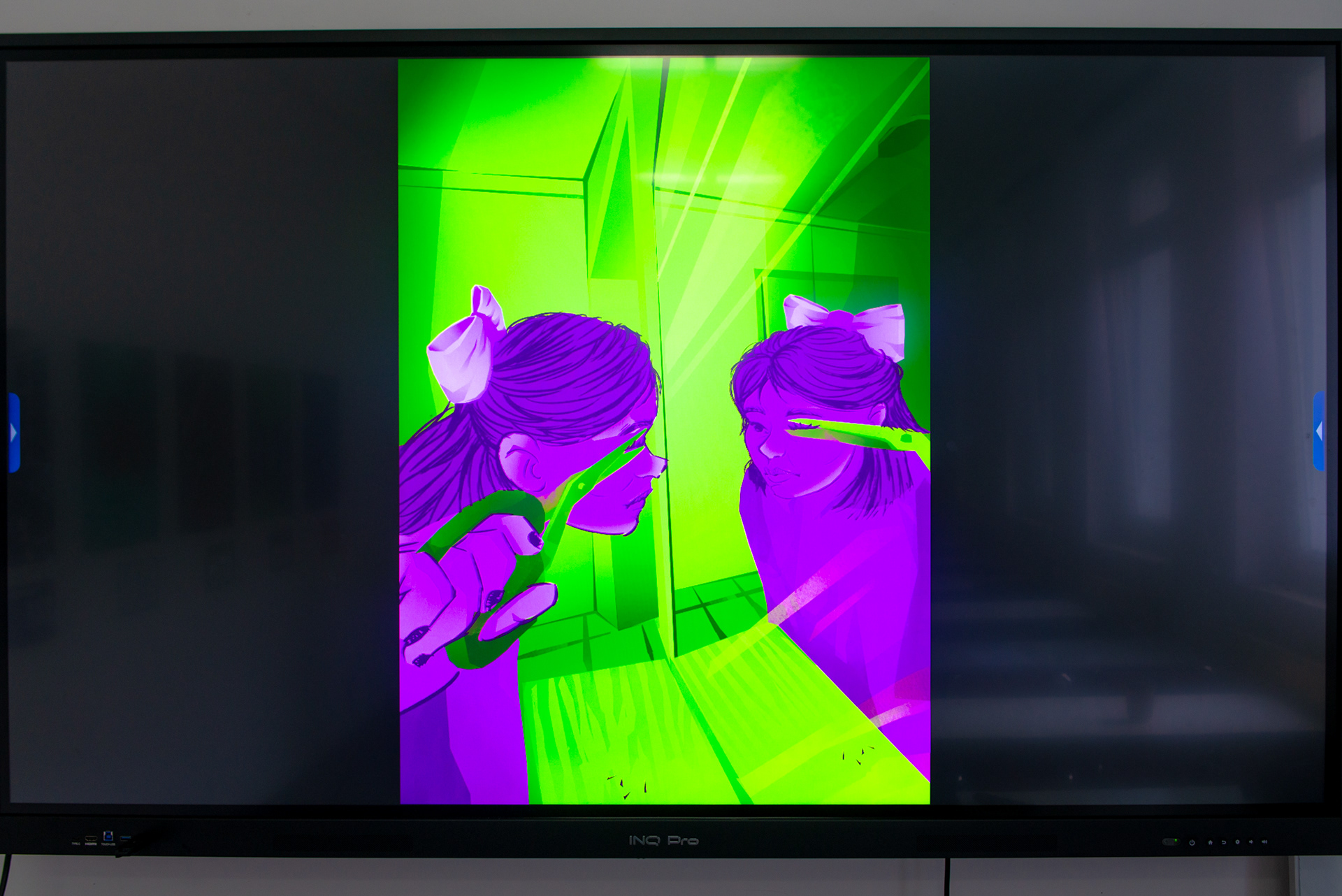 Chciałam, żeby pokazane historie nie były tylko statyczne, dlatego postanowiłam każdą ilustrację dodatkowo uruchomić. Dzięki animacji w sposób symboliczny pokazałam, jaki każda opowiadana historia ma nastrój. Jak zmienność i intensywność emocji ma wpływ na działania człowieka i co nim wtedy kieruje, co odczuwa.