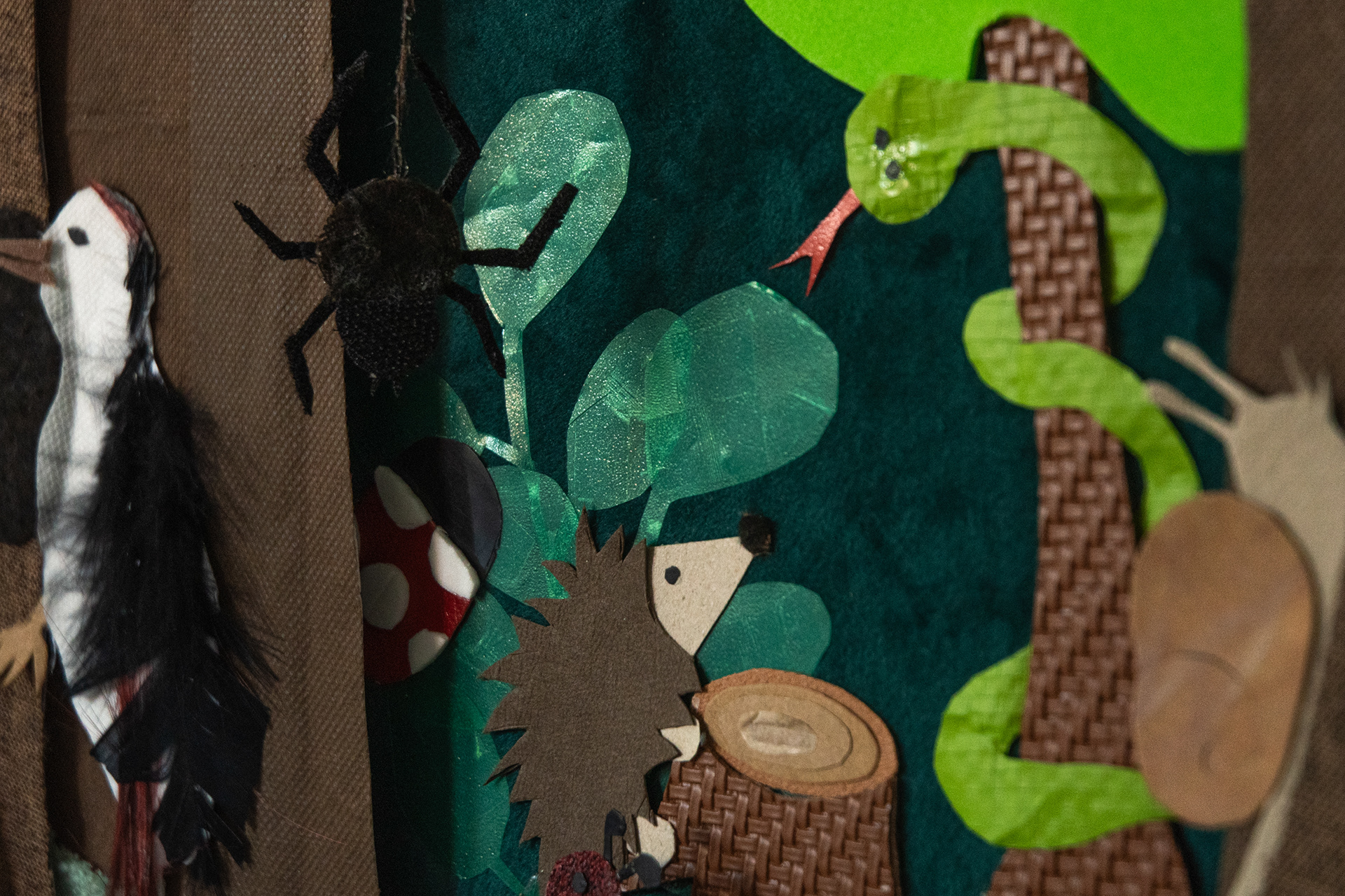 Ta realizacja ma dla mnie wymiar osobisty. Łączy wspomnienia dzieciństwa i spacery po lesie z fascynacją artystycznym eksperymentem. Moim celem było pokazanie, że książka dla dzieci może być projektem artystycznym, a jednocześnie pozostawać bliska codziennym doświadczeniom najmłodszych odbiorców. Na prezentacje dyplomową składa się obiekt książka, dwa przestrzenne plakaty promujące publikację o formacie 50/70 cm, utrzymane w tej samej stylistyce kolorystycznej i fakturowej oraz nagranie wideo prezentujące działanie książeczki, wyświetlane na ekranie.