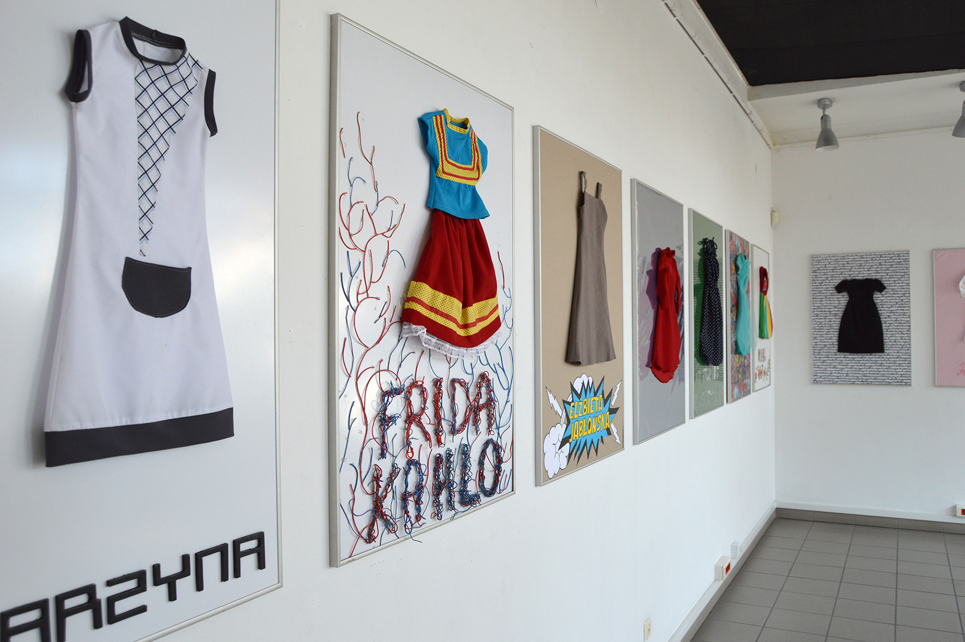 Na pracę składa się dwanaście plakatów, których bohaterkami uczyniłam artystki z różnych względów dla mnie istotne. Elementem centralnym każdej z prac jest sukienka. Są to odtworzone w odpowiedniej skali ubiory, które artystki miały na sobie podczas działań performatywnych oraz takie, które pojawiają się w ich rzeźbach, obrazach, grafikach i filmach.
