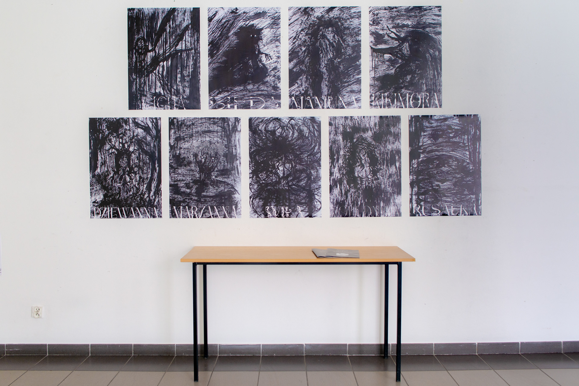 Całość pracy składa się z 9 prac graficznych oraz książki w formacie A4. Do wykonania tych prac wykorzystałam wiele technik rysunkowych, głównie opierających się na tuszu, węglu oraz pastelach. Ostateczne przedstawianie ilustracji jest w formacie 50x70 cm w druku cyfrowym.Patrycja Drężek