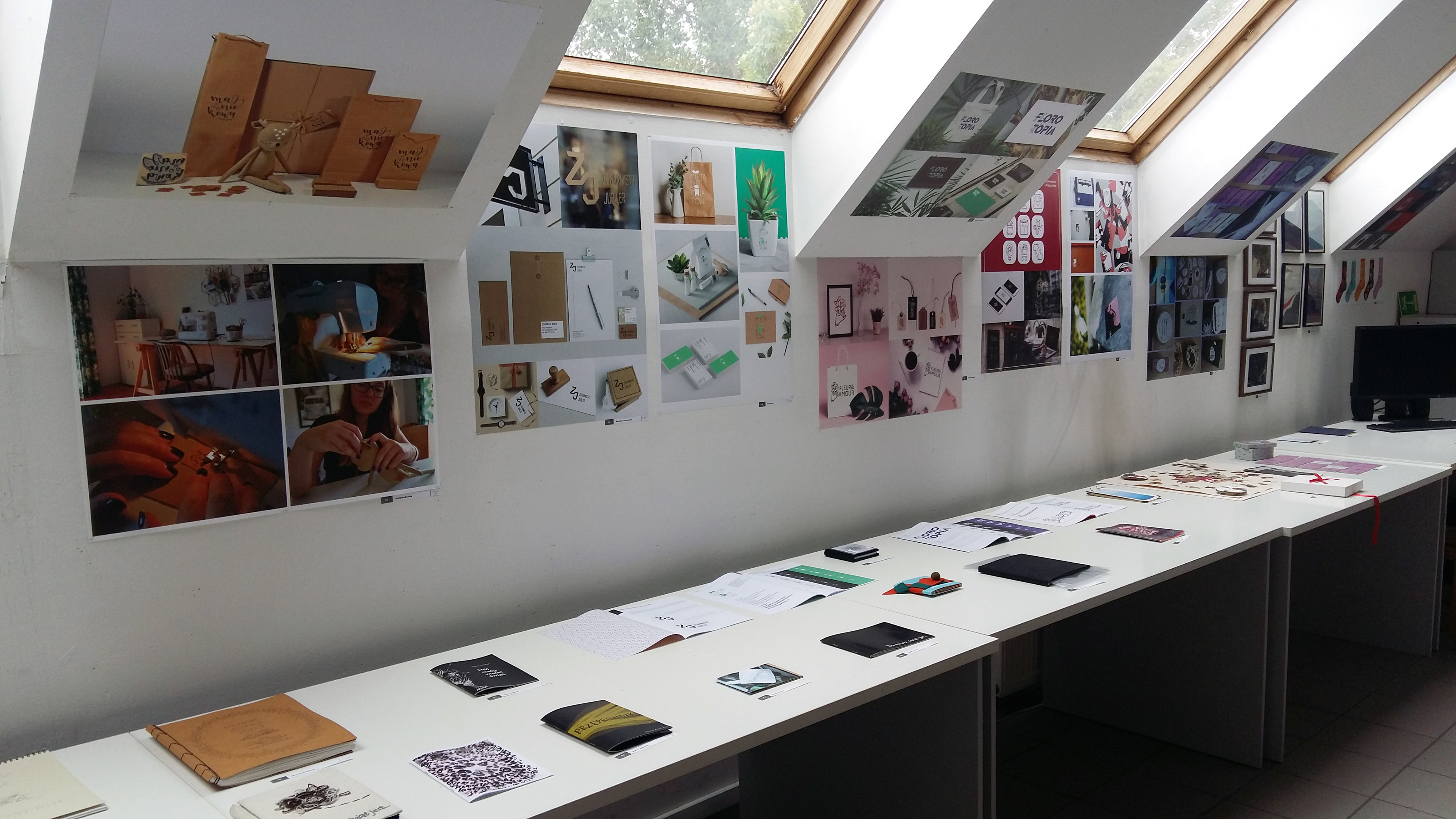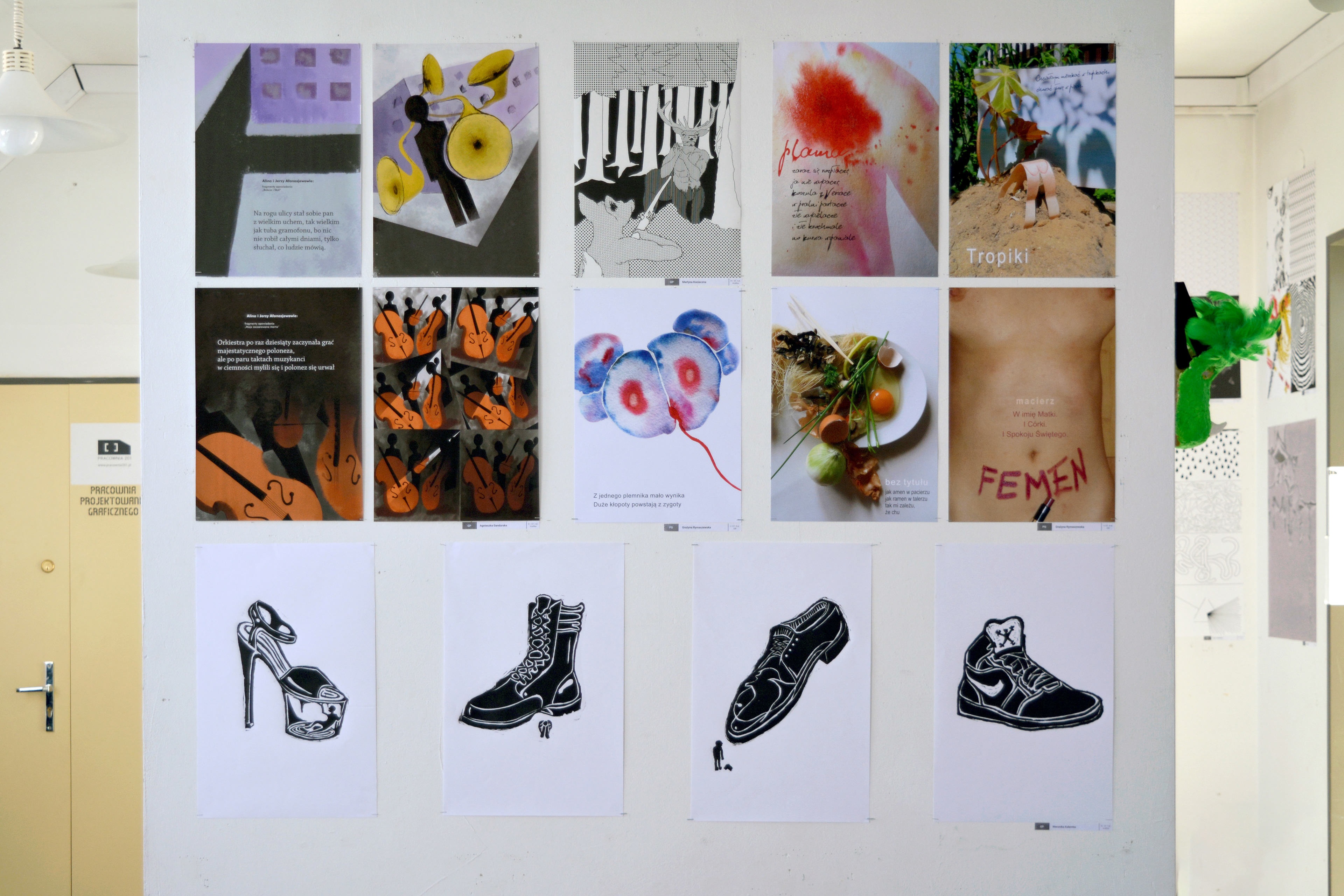 Pracownia Projektowania Graficznego, dr Piotr Czech, asyst. mgr Joanna Fuczko, wystawa końcoworoczna 2019, wybrane prace studentów pokazane w galerii: